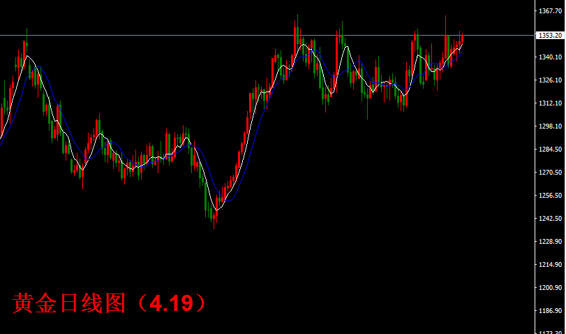 黄金交易投资要领: 顺势为皇,轻仓为王,点位为相,止损至圣,稳健收益,落袋为安,贪心必败! 黄金日线图(4.19) 国际形势方面,上周末美国军事打击伊拉克以后,消息面渐渐趋于平淡。中美贸易争端趋于平淡以后现在又有所升级,中兴华为受到制裁,中国进行有计划的还击。同时美俄贸易关系也趋于紧张。黄金短时间内还是以