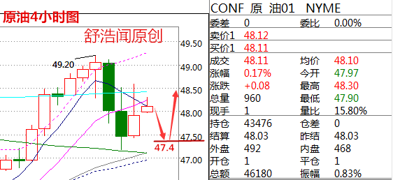【行情与指导回顾】 日内原油走势自47.97美元开盘后,小幅反弹至48.3位置受阻回落整理,盘中指导微盘客户48美元附近追个空单,亚盘尾端跌至47.7美元附近,空单也是小获利出局,随后获得企稳反弹,欧盘时段油价拉升,且刷新高点至48.34美元,再次受阻整理,美盘时段初,原油开启回落模式,盘中于47.9附近继续指导大盘与微盘