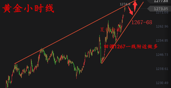 人们常把金融投机比作登山,当我们选择了这个行业,如同选择了攀登珠穆朗玛峰,风险将始终伴随着我们,而登上梦想中的顶峰,是我们不畏艰辛,勇往直前的源泉和动力。或许终其一生,我们都不能到达那座顶峰,但是我们终将无怨无恨,从踏入这个行业的那刻起,注定将挥洒我们的热情、智慧、青春以及生命。 ===圣诞休市一天,今日黄金原油分析策略=== 周一金价在大阳拉升之后,金价企稳1260关口,今日亚盘金价继续上涨破高,多头动能较为强势,金价突破1270关口,日K线趋势趋向1280区域发展,对于今日黄金操作上,夏侯建议顺势做多为主,早盘回撤低点1264沦为分水岭,1264支撑之上低多看涨,若回撤跌破1264低点的