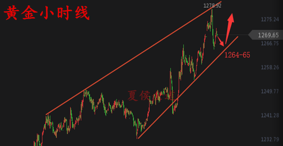 风的方向由树决定,水的方向由山决定,交易的方向由趋势决定。当行情按趋势运行后反弹给到一个合适点位的时候,我们会毫不犹豫的进场交易,夏侯认为不追求短期的暴利,也不追求一夜暴富之后又一夜回到解放前的刺激,投资市场没有常胜将军,但却有稳定获利的人,这里比的不是谁走的快,而是谁走的稳走的远。勇气是控制恐惧心理,而不是心里毫无恐惧。命运就像自己的掌纹,虽然弯弯曲曲,却永远掌握在自己手里。人生就像钟表,可以回到起点,却已不是昨天。只要成长,今天损失的明天将会翻倍赚回;而要退缩,市场会无情的拿走你手中拥有的资金,直到你退出为止。 ===黄金看涨不变,回调1264下方继续多=== 在美联储今年第四次加息、并