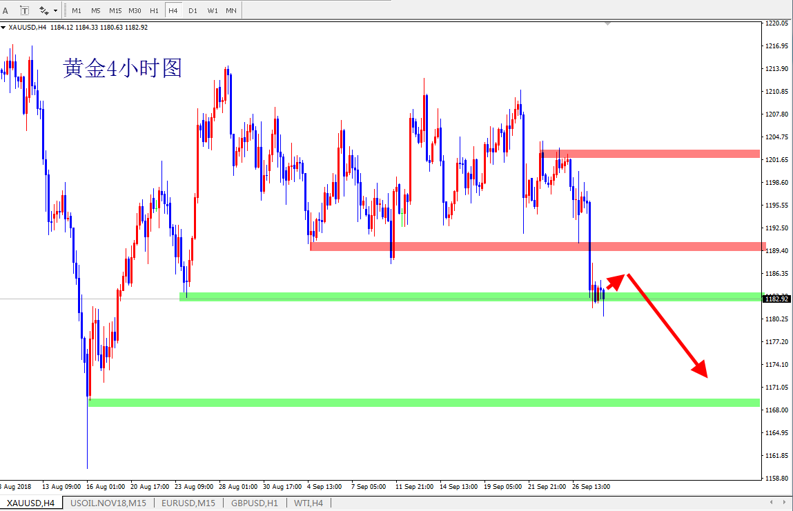 市场不能改变,但是交易可以,看待趋势的眼光,在很大程度上决定了交易会有怎样的走向,优秀的交易者并非与生俱来带着光环,只是在交易的选择上,都对自己有所要求,不因臆想而散漫固执,不因辛苦而放弃追求。 黄金上周一延续1192的探底,亚欧盘整理震荡小幅反弹。上周四暴跌,下破1192-1188的有效区间,然后行情放量下行。但是周五又没有延续,而是亚欧盘持续1184-1180整理,然后美盘出现了强势拉高。每周的行情节奏没有延续,周五变盘。行情下破了1192-1188将近一个月的整理有效下方支撑同样没有延续。简单说这个行情就是一个区间不那么规则的来回整理反复走势。所以还是不用趋势的角度思考,做整理区间即可