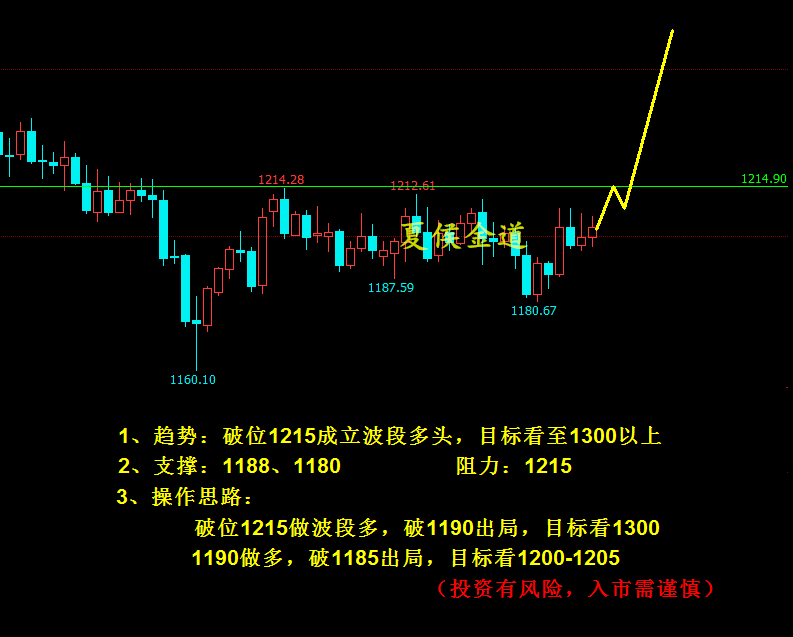 最近总有人问夏侯黄金什么时候上涨,多单没止损该怎么办,诸如此类的问题只想回答四个字:顺势操作。明明是强势下跌格局,但总有人担心跌太多行情后继乏力,事实证明这一切都是妄自揣测!夏侯带领大家从周三1195.5空开始,到加息夜1199.5空,昨天早盘1196.5空,美盘1188继续空!空单已经四连胜!你还在纠结要不要空,什么时候空!非常清楚这样的行情等待的结果只会是踏空,想搭上空头这班列车就只能直接出手,因此夏侯从不犹豫,行情来了大胆干!交易结果有输有赢,但是我们的观点非常明确!点击查看夏侯最新操作! 顺势操作谁都会讲,但真正落到执行上却变了样。本周我们的操作依旧犀利。目前黄金方向明确,局势明朗,