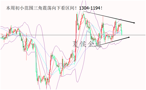 喜欢就关注,认同就点赞,受用就收藏,有疑问就评论。欢迎一起交流技术、方法、心得;夏侯团队致力于引导投资者做正确的决定! 做对了盈利是理所当然,做错了又怎么办呢?在黄金市场上做错之后的唯一选择是马上承认错误和改正错误,而止损正是承认错误和改正错误的主要手段。任何一笔交易都不应该看作是孤注一掷的赌博,而是概率游戏中的一个分子。不执行止损操作,意味着不愿或没有勇气承认错误,潜意识里或者认为自己不会犯错,或者抱有侥幸心理。而根据墨菲定律,“如果某件事有可能变坏的话,那么这种可能性将成为现实”,小错误会变成大错误,小损失会变成大损失,最终变得一发不可收拾。 上周黄金大区间在1208/1190区间,整体