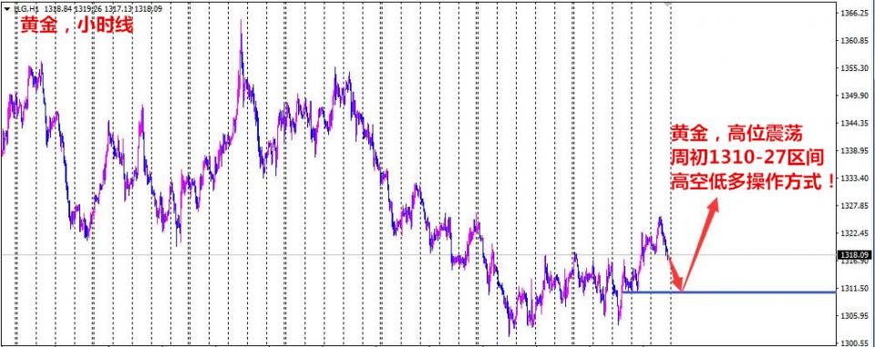 本周整体行情完全符合预期,周初一直维持在1302-20区间震荡,直到周四美盘在消息面与技术面完美配合下突破了上方1320阻力,局势已经逐步开始发生变化,也证明了我们之前的分析是正确的,千三关口支撑确实不那么容易跌破,大级别高位震荡仍在进行,在周评文章中夏侯金道就明确表示,上周虽然破位前低点1303-07支撑,但空头没