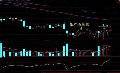 五阳线顾名思义就是由五根阳线组成的K线组合,一般情况下都是阳线,夏侯这里所说的低档五阳线值得是处在低位的五阳线。 【形态特征】 (1)出现在下跌行情中; (2)连续拉出5根阳线,多为小阳线。 【操作策略】 1、出现五阳线之后价格已经是稍微有所增长了,但是价格不会迅速的攀升,这还需要经过整理。五阳线上涨的幅度越