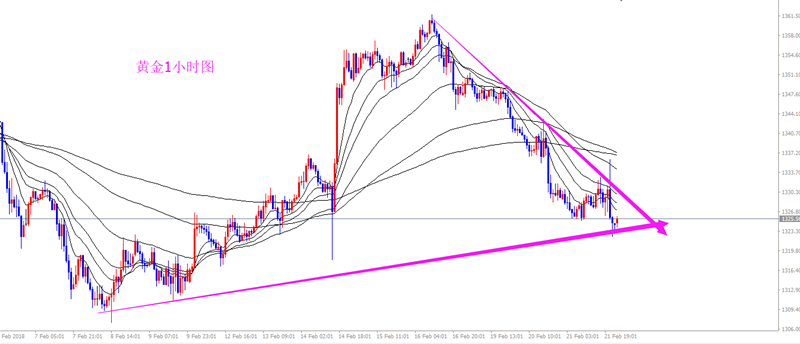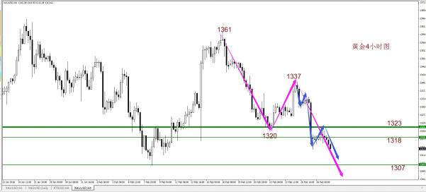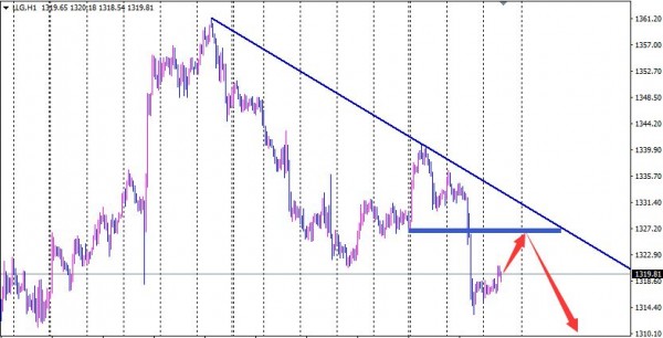 最近行情都要到美盘才能出方向,今天也不例外,昨天大跌后白天并没有续跌,相反,从欧盘小时线反弹来看,行情走震荡修正的概率要大得多,所以虽然是日线压制,虽然昨天刚刚大幅下跌,但今天要等反弹才能做空,阻力当然还是1320上周低点,以及1325-30区域昨晚第一波下跌的位置,行情处于震荡下行是明确的,但做空点位相对没有