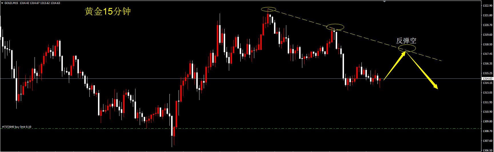 正即将结束,空头占据优势。昨日盘中笔者非常明确的指出,黄金在连续下行后失去空间优势,加之势能不足,低位切记不能过分看空,同时给出低多看涨的运行思路以及交易策略。昨日盘的表现恰好就是走出反弹且触及我们所预估到的1323目标位,首次触及后便承压,当前上方1323以及1325将成反弹或上行中有效的压力位,日线虽在昨日