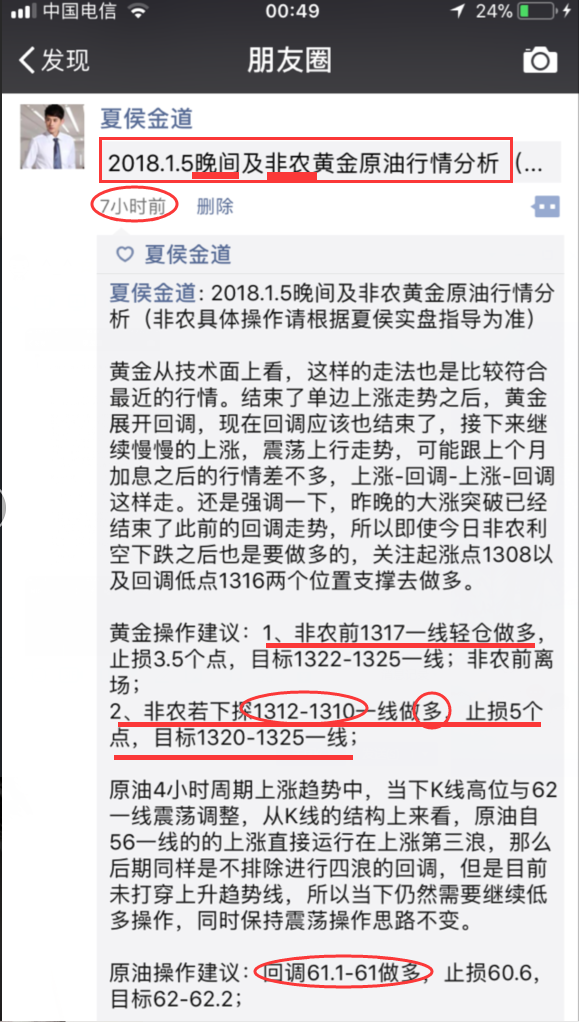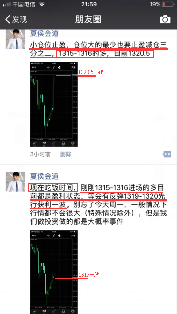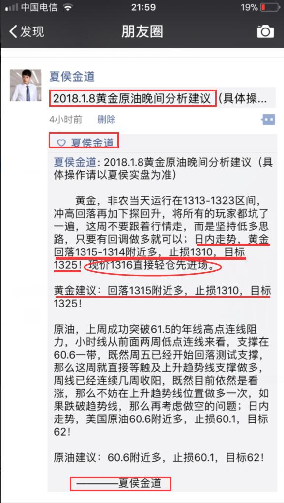 黄金非农前夕和非农两波多单稳健止盈,共10美金左右利润。油61-61.1的多止损带好看前高61.6,就在刚刚没一会功夫又涨了不少,目前报价61.35~61.4,不想持仓过周末的现在可以小赚出来了,想看更高位置的则持仓下周继续看涨(欢迎朋友圈验证)这段话是我临睡前对我的客户发的消息。 投资本身并没有风险,只有失控的投资才有风险