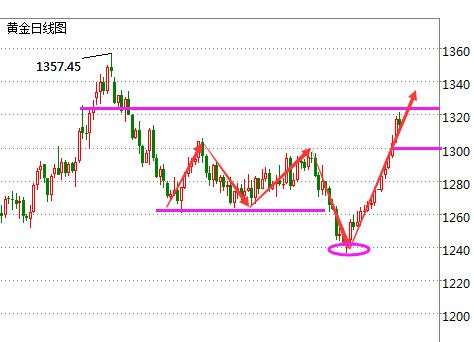 箱体是对金价走势的一种描述。所谓箱体,是指金价在运行过程中,形成了一定的价格区域,即金价是在一定的范围内波动,这样就形成一个金价运行的箱体。 我们看黄金价格走势图中能看到,当金价下跌到一个箱体的底部时,会受到市场买盘的支撑;相反,当金价上涨到一个箱体的顶部时,会受到市场卖盘的压力。那么,金价一旦突破箱