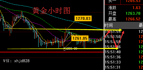 做空进行到底,夏侯金道上周就说1260估计支撑不住,下跌得看1240一带支撑,也就是今年低点1123-1195连线支撑,然而经过周一大跌,再加上白银无底洞式的弱势下跌,很明显,行情已经不是寻求支撑的阶段了,而是彻底转空,这一点你一定要相信,如果将周一破位下跌看作本周调整的开始,周二和周三白天弱势震荡看成修正,那么昨