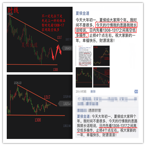 ===咱以后有缘江湖再见,我夏老师言尽于此=== 昨天新年开工第一天,能给大家带来盈利是我最大的成就感,虽然盈利不多,就像我客户说的那样,老师,要是每天都能这样赚3个点就发财了。是的,用客户评价我的话就是,稳准狠!1308附近做空,1305下方止盈。人不能贪,昨天一路先跌了10多个点,虽然3个点不是很大,但是一手也有个300美金也就是2100人民币左右!你想一想那些辛苦工作的广大人民,一天能赚多少呢?你再看一看市场上亏的那些人呢?知足吧!确实每天赚一点,我也很知足。我给你们成本这么低,我是真心带你们赚钱,特别是年前开户的手续费为0,后面随着夏侯客户不断的扩大,手续指导服务费百分之百是还会加的