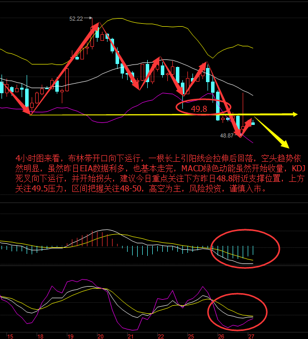 ZY【卓越纳金】10.27-油价EIA都难救赎,空头难挡或再探48 入场点靠的是技术分析,入场后靠的是心态,仓位管理以及运气,而利润的出现,保持,扩大,靠的是移动止损和止盈。 寄语: ●你被行情迷惑不知道怎么做,来找我,我给你指明方向! ●如果你现在控制不住自己还在疯狂的不知方向的做单,请你停下来,不要拿自己的资金开