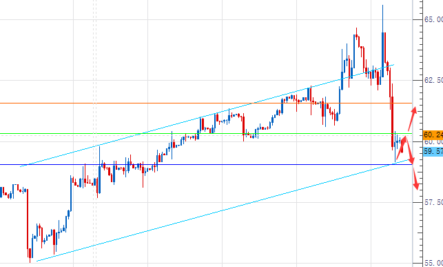 文/金梦夕 市场没有新鲜事,只是不断在重复;赢家懂得等待,输家频繁出手,但往往失手;聪明的人懂得休息,愚笨的人川流不息;不懂得战略布局的人,一定难以取得令人敬畏的成功,每天刷单的成功仅限于解决温饱,而不不是在真正的做投资,我们所追求的是趋势带来的价值投资机会。 原油,从昨天高点遇阻承压,到今天早盘的续跌,已经5美金由于,短线这种跌幅的原油走势可以说鲜有。前面我们已经讨论过,原油这波的持续上涨水分比较大,投机性多单很多,所以被砸盘并不奇怪。结构上来看,四小时当前并未跌破55以来的支撑反弹区间,但60关口的破位成为市场看空的关键,该点此前一直视为空头逆转的关键,但行情在59附近止跌,该点为55-