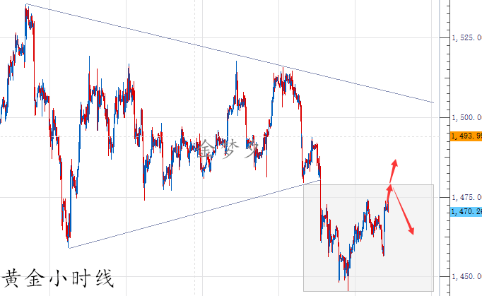 戏剧系的走势,也暗示着市场对于贸易不确定性的担忧,而凌晨的二次反弹,收复隔夜美盘的跌幅,也说明了避险情绪的高涨,从技术面来看,其实你很难去解读这种走势的含义,如果结合上周在1445.5的止跌,你可以认为市场在试探阻力,但反过来,何尝又不是空头布局的一次良机呢?至少从技术面来看,1470-1480这个区间,目前没有绝对的强弱。短线,凌晨低点给到1465.9,预计短期间内行情暂时不会跌破1464.8的前低,不过从四小时来看,行情还是处于震荡上行通道中,那么短线可以先看一波支撑确认。 贸易前景的忧虑情绪再度对黄金形成支撑,但是美联储结束宽幅的货币政策步伐,对黄金形成压制,使得金价处于震荡小幅上扬的