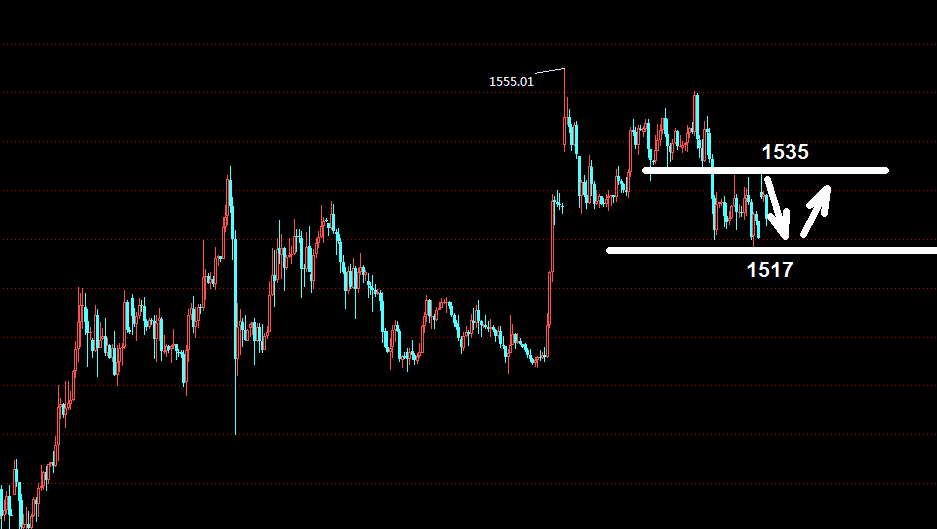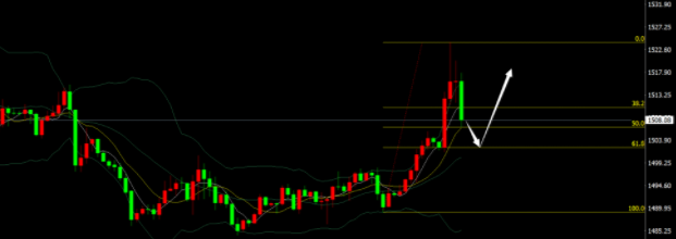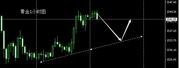 棕铭团队的交易依然非常稳健。昨日又是全胜。再次恭喜大家,预祝再接再厉,今天做的更好。现在,我们关注黄金: 从上图来看,有以下几个特征: 1、目前处于15分钟周期图的双轨线之上。暂时处于多头行情。 2、当前处于双轨线的支撑区域,预计存在一定的反弹机会。 所以在思路上暂定以看涨为主。但是,需要关注昨日的最低点1525,如果有效跌破,预示着走势变弱,可以尝试做空机会。 所以:1525成为了今天的多空分界线。 ------ 当前去预测未来还没发生的事情,是一件非常愚蠢的行为,犹如算命一样,准确率不高,不符合实现稳定盈利的标准,所以我们不去犯傻。而我则是耐心等待入场信号,信号出现,立即入场。 具体的入