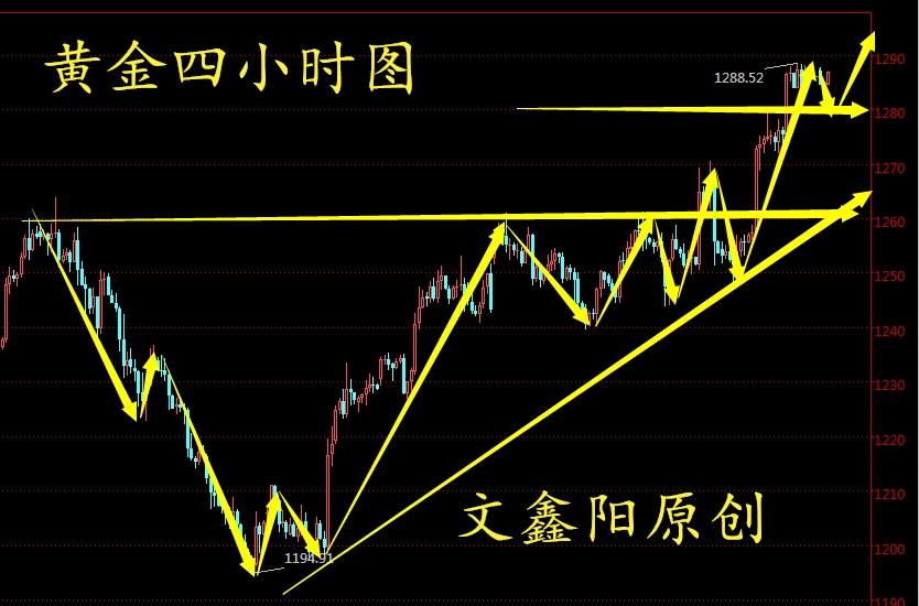 晚间黄金因特朗普讲话刺激,导致黄金直接暴涨一波,上破1280,最高拉升到1283。看到这样的行情,鑫阳知道很多朋友肯定睡不着了,所以为了那些朋友能够放下心来,还是写篇帖子,虽然不能立刻让你的单子解出来,但是起码可以给你吃一颗定心丸,让你安心睡去。像以前这个时候你已经躺在床上,享受着美梦,但是现在你却无法入睡