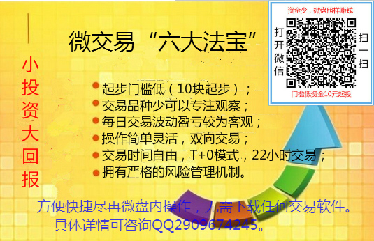 陈峻齐:微信新玩法,一个低门槛的投资平台微盘。 随着科技的发展,手机的使用也越来越多样化,很多新功能在不断的加入,手机也在朝着更智能化、大众化的方向发展。现今越来越多人的目光离开电视、电脑转向手机,诸多行业的业务运作也在和手机端口靠拢。微盘也就自然而然的应运而生了。 什么是微盘投资? 概念:微盘是依托微
