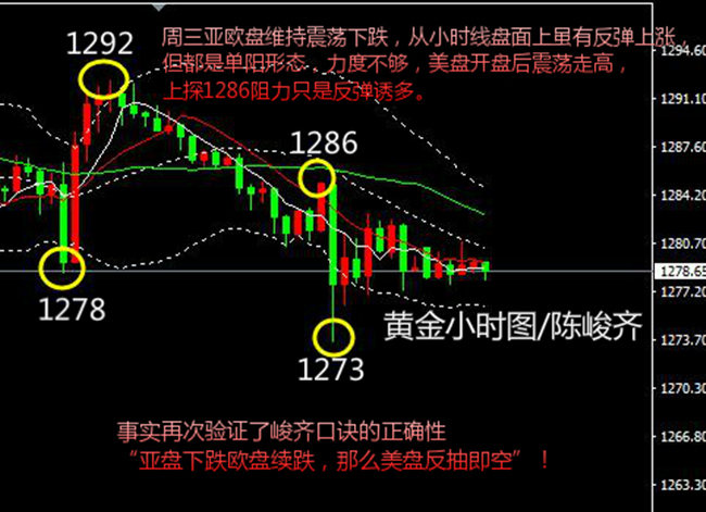 陈峻齐:黄金再遇砸盘 短线高空为主低多为辅 自周一(4月17日)黄金跳空高开上探1295一线未果后,黄金已进入短线调整时期,这两日黄金行情上窜下跳,持续震荡洗盘,基本上都是受到主力机构砸盘的影响,周二(4月18日)晚间一分钟内30亿美元的砸盘,直接造成了黄金的跳水下滑,探底1278支撑后快速V型反弹,上行止步于1292阻力而