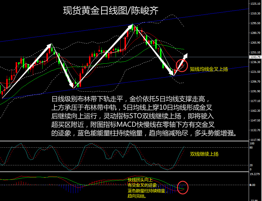 陈峻齐:黄金上涨趋势强烈回调继续做多 消息面解读: 受周末(5月14日)朝鲜试射导弹以及美国政局不稳的影响,本周初黄金避险需求持续增加,美国近期的数据也表现疲软,令市场失望,在美元持续遭受卖盘倾向打压之际,黄金正获得进一步动能。地缘局势升温以及疲弱的美元支撑金价上涨,但全球股市飙升又限制了金价的涨幅。周一