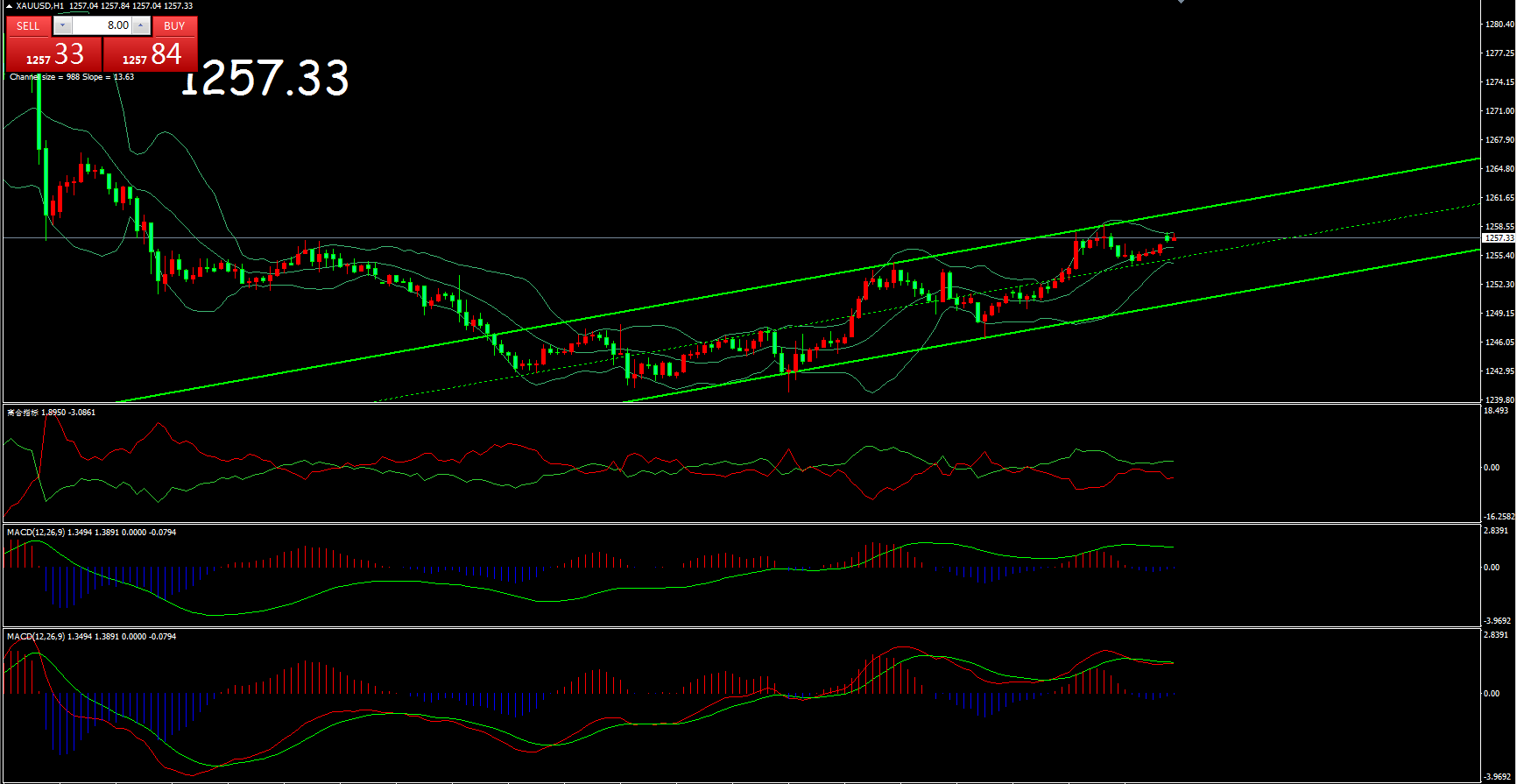黄金早间压盘高开,阿昆个人,我们来看黄金,上周周五日线周扬,从日线图来看,练手三连阳,很有转向的可能,从四小时线来看,已经达到1260一线阻力区间,空头趋势渐渐的走弱,则日内可在1250--1255一线建仓多单,上面看到1260附近。如果实破1262一线,可以破位持有,继续上看到1265一线。如果下破1249一线,则可回调至125