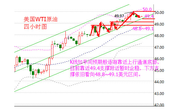 述技术面分析与早间API数据利空的消息面来看,都是利空的趋势,但是经过昨日的一波跌幅,油价虽跌破50美元大关,但是收盘价仍然在50美元上方,所以今日做单重点关注50美元整数大关的重要支撑,如果50.0美元不能有效下破,我们可以在50美元上方低位布局多单,如果有效破位,我们顺势做空,重点关注晚间EIA数据的公布。