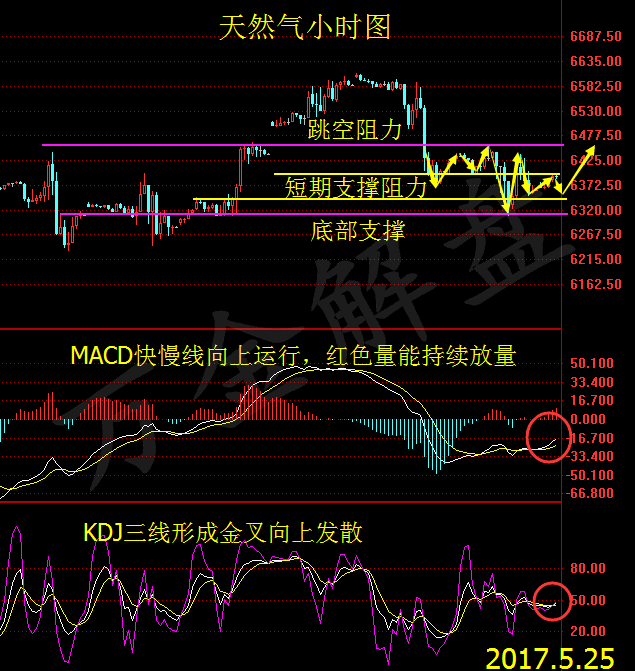 1.拿的利润越大就越危险你需要克制贪婪 2.行情变幻莫测拿捏不定是你要学会变通 3.一时失利不要抱怨这时你要善于总结分析 4.错过了大行情你要明白犹豫不做单,做单不犹豫。 【天然气技术分析】 回顾昨日行情,亚欧盘震荡上行,触及上方支撑6480一线后无力上破,至此时行情转向空头,在美盘时段行情开始加速下跌,至高点暴跌