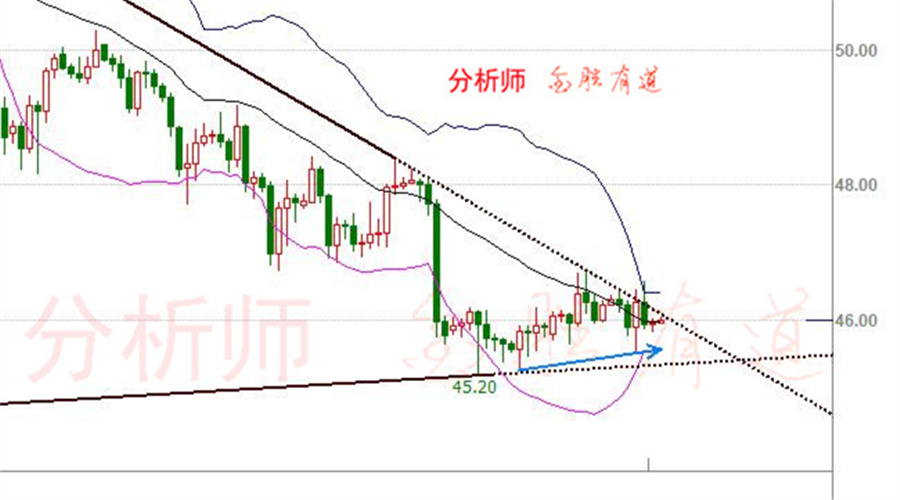 天然气投资的过程就是分析以及计划的执行过程,在分析的工作当中技术分析又是不能被忽视的问题,尤其是当投资者使用多种分析数据进行具体的判断时需要更加的注意。下面我们来看看K线与布林带结合情况之下的操作指向。 1.当天然气K线从布林带中轨上方、向下突破布林带的中轨时,预示着天然气价格前期的强势行情已经结束,天