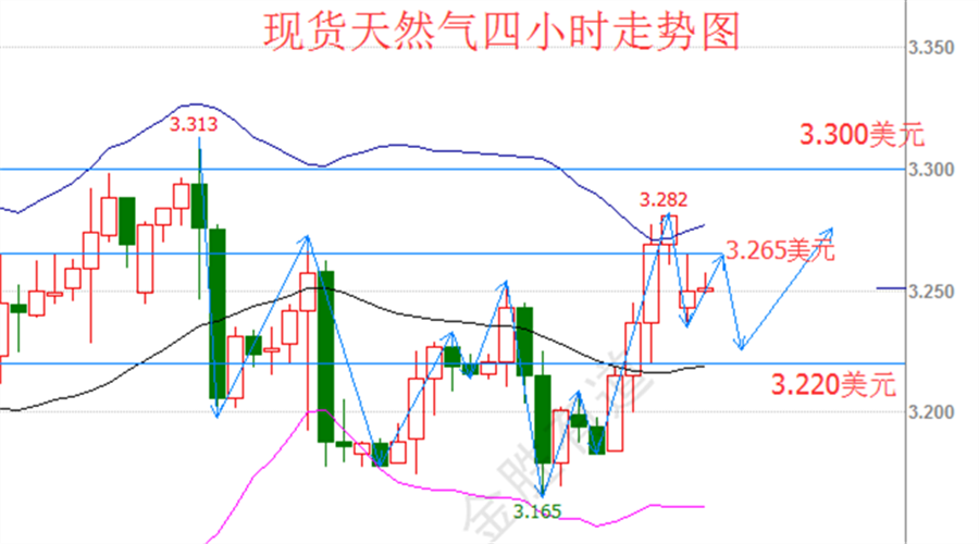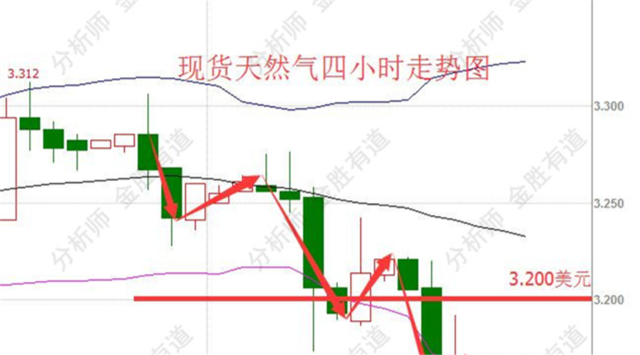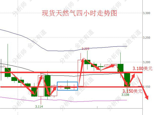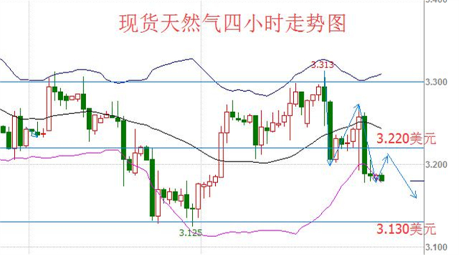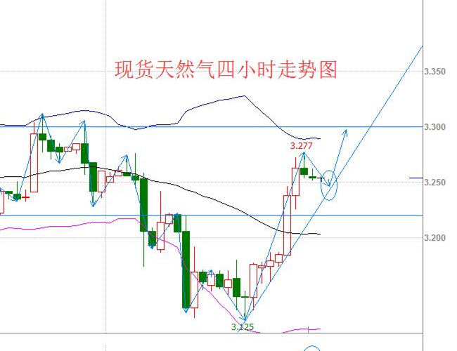 如果你从不接受挑战,就感受不到胜利的刺激,最大的挑战和突破在于用人,而用人最大的突破在于信任人。入场是一种勇气和底气,而离场则是一种决策和态度,做时莫要贪,走的勿要恋!得之你幸,失之你命,半夜的暴涨与你无干,只是把利润与风险一并留给了守夜人! 现货天然气 从四小时 走势图来看,天然气价格一度跌至3.220一