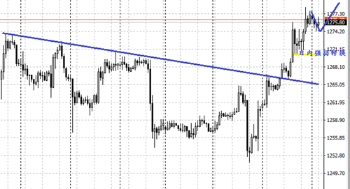 今日方面,凌晨二次上升,但美盘回撤1270,这意味着1270是今日多空分界线。而1274附近是前期高点,凌晨到早间回撤,这顶端转换位还是要用一次。今日,市场从在普遍看多的问题,而大阳突破,下跌的概率不大,最多就是震荡。但我们需要当作极强破位来操作一次。而这种形态中,一定要注意,回撤不上升,上升不回撤。这就是为什