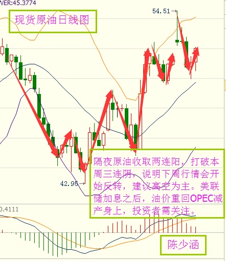 陈少涵:非OPEC减产原油持续走高,白银承压静待美联储加息 陈少涵寄语:我相信每一个做现货投资的朋友都是抱着一个目的来的,那就是为了赚钱!如果不能赚钱在这个市场上就变得没有了意义!陈少涵的投资理财世界里面蕴藏着数不尽的财富。我们没有必要也不可能把它的财富在一朝一夕都收入囊中。在我的投资生涯中,我一直都坚持