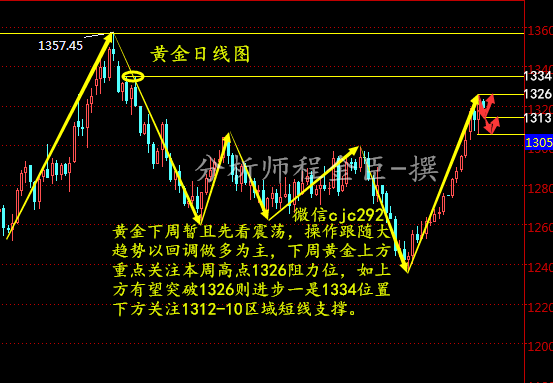 北京时间(1.12程金臣/撰)宝剑锋从磨砺出,梅花香自苦寒来,挺过了艰难的日子,迎接你的将会是你所向往的春天。本周前两个工作日持续横盘走震荡,且波幅不大,操作的就相对较少,只是稍稍把握了一些,周三因为一则突兀的乌龙事件,引发金市暴动,但是这波行情走的很急,可以说没多少人能把握到。好在是这一波涨势也算及时遏