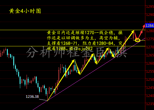 北京时间(12.27程金臣/撰)近期黄金的走势已经是日渐明朗,尽管如此,面对这样的行情仍旧是有人欣喜,有人悲伤。你听到或看到的思路可能很多都是看上涨,但实际你是很迷茫。由于缺乏技术性判断,你把握不到合适的进出场点位,很难受!每次操作你的内心要进过激烈斗争才会做出选择,结果犹犹豫豫错过了行情,或者是你凭感觉