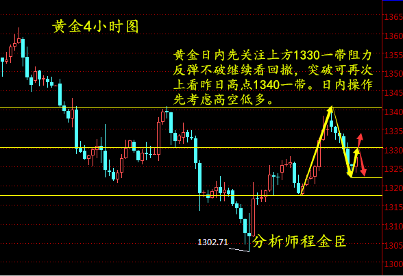 北京时间(3.8程金臣/撰)如果有人错过机会,多半不是机会没有到来,而是因为等待机会者没有看见机会到来,而且机会过来时,没有伸手去抓住它。近期黄金获利机会还是很多的,但是抓没抓住你心知肚明!昨日白宫首席经济顾问科恩辞职引发市场风波,黄金早盘跳高探顶承压,由于黄金此前已经走出了一波突破,这使得市场多数人继