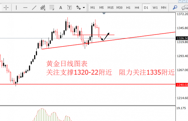 李兴淼:贸易起争端黄金趋势震荡回踩再做多 学习的时候我们是在对抗懒惰,交易的时候大多数我们是在对抗冲动。就个人的看法而言冲动进场才是交易最大的敌人,很多时候思考好自己的思路方向就扎实的按照去实施就好了,虽然可能会错但是从概率上而言长期下来是能够盈利的。 上周五时候我们期待黄金能够回测一次1310-12附近确认