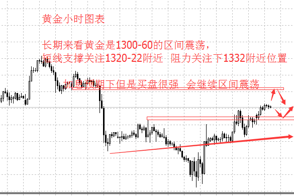 李兴淼:黄金反抽依然震荡调整需要时间空间 黄金几乎和上周五提出的评论建议一样的走势,这一波黄金下跌测试到1310附近的支撑后完成蓄力后今日早盘时间一波上涨测试到1326附近位置,目前大家关心的还是黄金这一次的回撤下跌后的上涨是表示下跌已经结束还是说只是调整而已。 就目前来看黄金早盘的上涨到1326附近也不能改变目