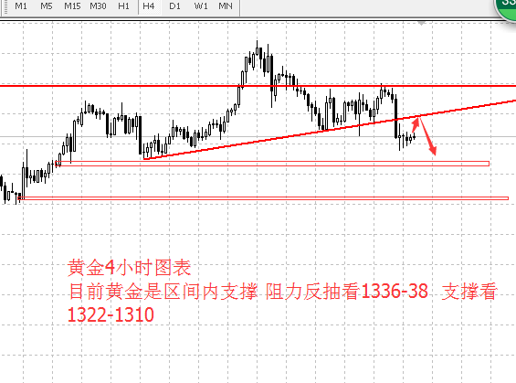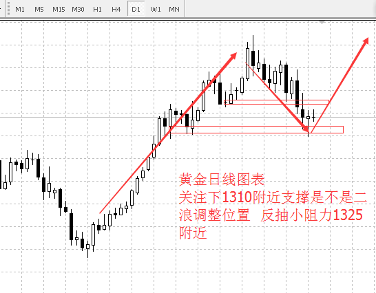 李兴淼:关键压力如期反抽黄金短线会调整 有印象的应该都会记得前期黄金是在1308-10附近震荡测试后一波上涨测试到了1365附近位置,这也是为什么笔者会在昨日的评论建议中提示大家关注1308-10的做多机会,昨日黄金测试到1307附近后一路反抽测试到了1322附近位置,有人说这上涨是因为美股下跌这个笔者也不去否认,任何时候的行
