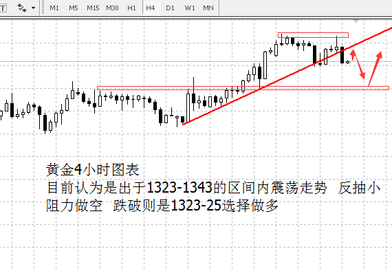 李兴淼:趋势未改黄金承压陷入高位区间震荡调整而已 交易日志回顾:当你在面对波荡起伏的行情时候总是需要给自己树立标杆,也给自己的交易思路确定一个方向。就好像本周来笔者就一直坚持在1343前期跳空的缺口压力位置建议做空,昨日黄金一度是测试到了1332附近。不过在多头趋势很强的情况下黄金的空方运行轨迹也是比较困难的