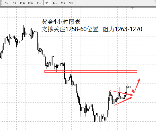 李兴淼:勿追高黄金反抽遇阻看回踩力度 交易日志回顾:最近市场经常性的关注美国税改计划的进程因为次数过于频繁好像已经被市场接受了,隔夜美国税改计划进行通过了投票但是黄金价格几乎是没有什么波动。昨日黄金最低1260最高不过1265高位区间内5美金的窄幅震荡其实是很难操作的,目前黄金的价格继续在测试1264-65的压力位置
