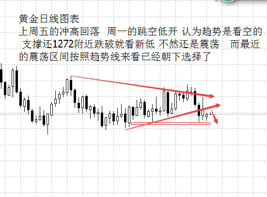 李兴淼:跳空缺口下黄金保持看空思路 交易日志回顾:当前来看黄金的波幅是越来越小的昨日开盘后波幅基本就是4美金内震荡运行,实际上现在期望的并不是能不能盈利而是黄金什么时候走出这个区间内,最近1270-90震荡接近两个月时间了走出来后面才会有比较好的机会,市场整体交投情绪不高的时候谁也没办法盈利特别是对于笔者这样