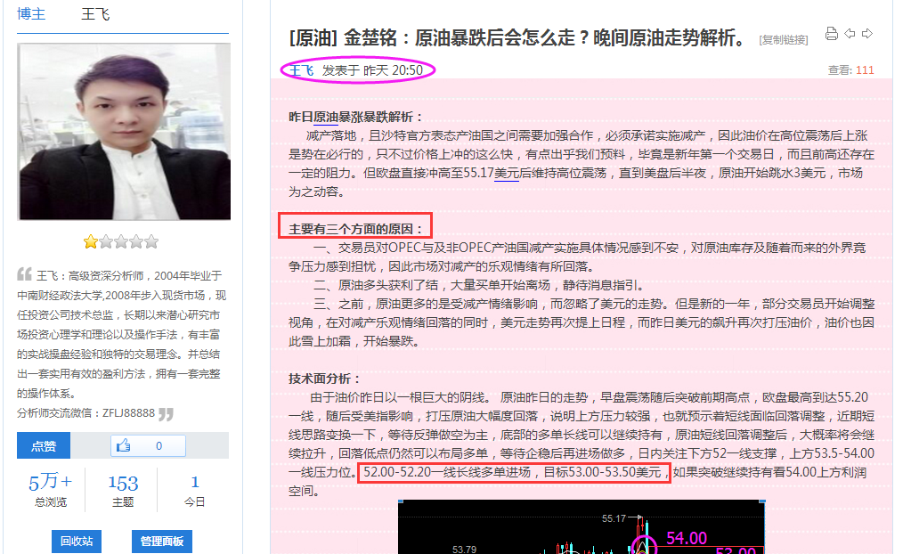 金楚铭:原油55美金在即,金价暗防V形反转。 原油 暴涨暴跌原因: 暴涨:油价周一短线攀升至18个月高位,因石油输出国组织(OPEC)与非OPEC产油国周末达成2001年以来首份联合减产协议,以解决全球供应过剩问题,协议达成大幅提振 原油价格 ,油价周一开盘跳空高开后继续上行,最高触及54.51美元/桶,涨幅近5[%]。 暴跌:虽然