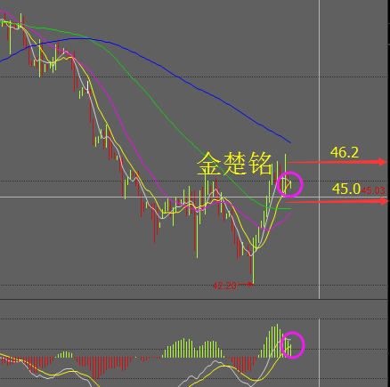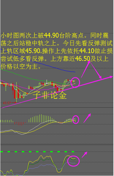 特朗普如果想用中国贸易做文章,中国用数据完胜。 汇率不是中国贸易的决定性因素: 短线图:4小时慢盘回升,不过布林道仍是处于收口状态。昨日顶到上轨处压制回落收盘。最高45.88.收在45.0.也算收得较低了。可见短周期打底还是偏弱。不是一步到位强势反弹。现在下轨处的支撑在44.0.中轨的支撑在44.75.不过上轨没张口,若能