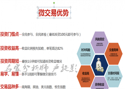 严施影:12.12微盘真的能赚钱吗?微盘优势特点及走势技巧解析 微盘交易是什么? 这是众多新手投资者想知道的问题,针对这一问题,严施影简单说一下。 首先:微盘交易平台是一款基于W.兴程序的微型现货交易平台,该平台将移动互联思维与金融产品结合在一起,依托于W.兴公众号,无需额外下载手机应用程序,扫描二维码、关注、