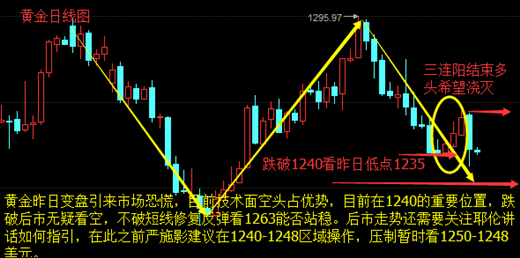 严施影:6.27金价闪崩后聚焦耶伦讲话,黄金1240拉锯战再次打响 黄金在1295之后经过近50美金的下跌之后,上周周尾的时候终于看到点起色。黄金在1240一线受到强力支撑开始初步反弹,黄金在日线收三连阳这个时候市场看涨情绪高昂,然而黄金昨日的情况是在1250一线突然瞬间跳水,上方1260一线阻力强劲始终不能突破加上这次乌龙