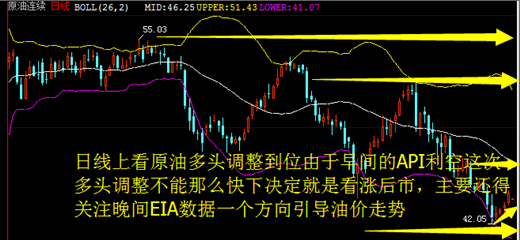 严施影:6.28晚间原油EIA预测会难逃周三魔咒多头畏惧? 随着42美元的支撑加强,原油近期的空头明显力量不足。昨日原油从早间开盘后于43.3附近一路震荡上行,美盘开盘前期,油价突破44美元的压制,盘中最高触及44.43美元后承压于44.5开始回落。今日凌晨API数据公布库存意外增加,油价开始走低,基本抹去昨日晚间的涨幅,日线