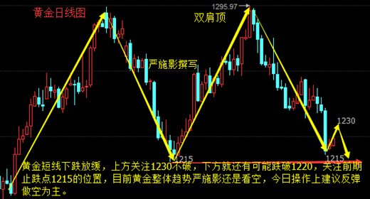 严施影:7.4美元回升黄金急速大跌非农有望反弹吗?多单被套怎么解? 昨日黄金大跌1220下方,显著空头给那些对金价前景继续抱有幻想的参与者沉重的致命打击。一般来说周初行情不大,可昨日黄金大跌20美金,主要是美元指数的回升,以及美国公债收益率的上涨,使得黄金承压。 而本周黄金市场还将面临多重消息打压美联储推行货