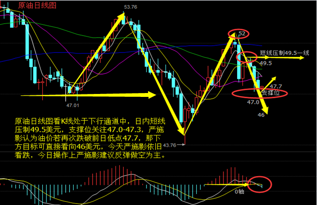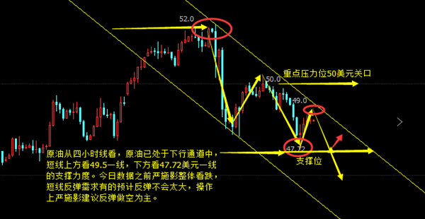 严施影:6.2原油利好多头依旧黑暗,空头趁火打劫会反弹吗?多单被套解套 文/严施影 昨日周四市场也有很多数据消息面刺激行情,原油方面,EIA库存数据显示连续录得下降,降幅为去年12月30日当周以来最大。数据公布之后原油原油先小幅下滑之后行情顺势上涨,但是涨幅不大,最终在49.2美元附近受阻回落,凌晨2点左右的跌幅回吐
