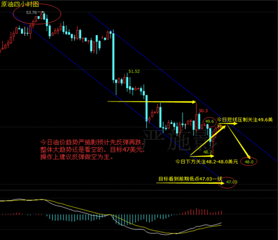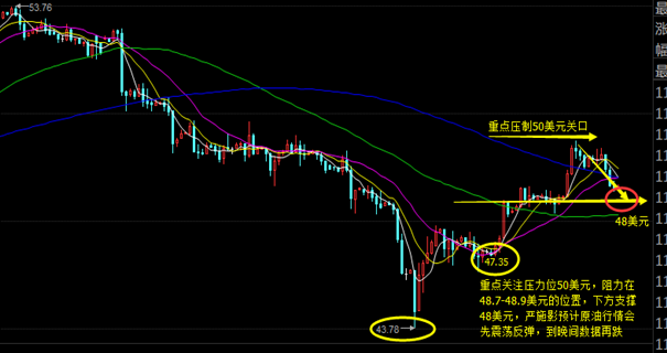严施影4.28油价反弹又上49,是否原油行情趋势更变还会跌吗? 文/严施影 原油市场自上周以来,布油美油均呈现波浪式下跌行情,波谷一浪比一浪低,令多头投资者后背发凉。本周周三(4月26日)EIA原油库存大降以及OPEC有望延长减产协议的利好,也并没有帮助油价走出颓势,美国原油期货周四(4月27日)跌势一度扩大至2%,触及四周