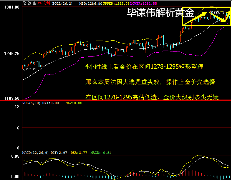 毕谦伟:4.21黄金原油后市走势分析和操作建议及被套解套 国际消息面解读: 4月23日,法国将举行2017年总统大选的第一轮投票。如今,距离首轮投票仅仅剩下两天,参选各方已开始亮牌、厮杀,大选局面多次遭到扭转。这场大选被称为法国史上最难预测的选举,选情扑朔迷离,至今结果难料,投资者纷纷紧绷神经,等待这一场恐引起