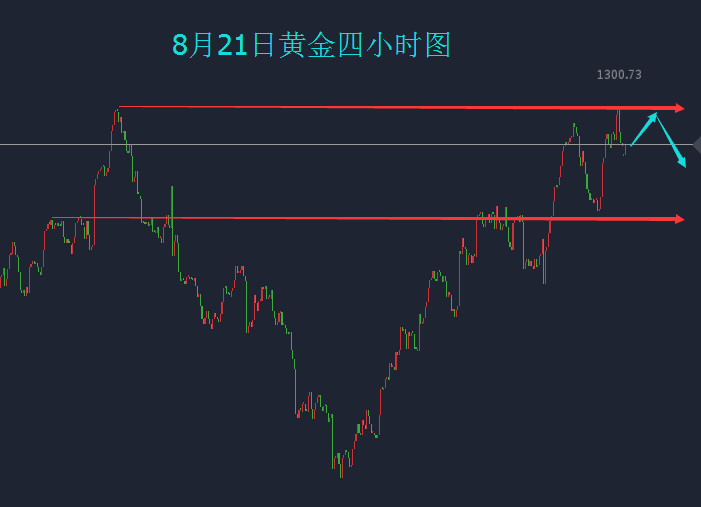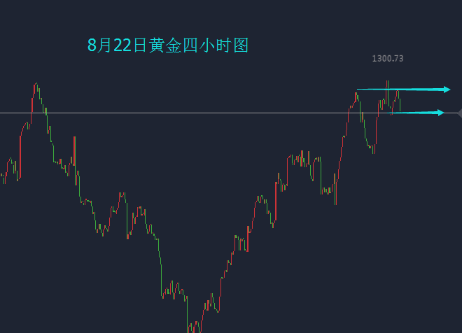 宋哲凯:8月22日黄金原油做空为主,做多为辅 黄金在上周短暂试探1300遭遇回落之后,本周一(8月21日)再度情景重现。虽然传出美韩军事演习的消息以及特朗普政府动荡未平息,也确实激发了市场的避险情绪,黄金出现震荡回升,不过,1300关口仿佛就是多头们的克星,迟迟无法逾越。眼下,是最考验投资者耐心的时候了! 避险情绪一