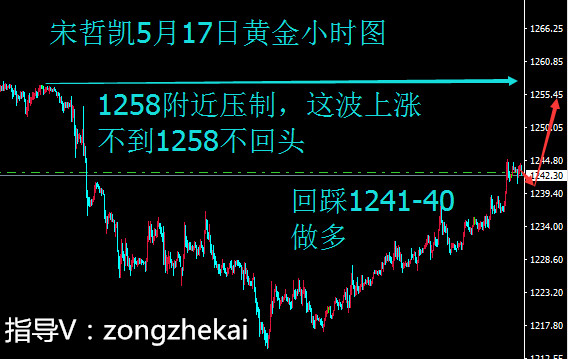 5月17骑士日,黄金回调就是做多 黄金强势收四连阳,周三(5月17日)高开高走,突破关键上行阻力位1240美元/盎司,大有向五连阳迈进的意味。而这一切,多头们都要感谢特朗普的功劳。昨夜惊爆的泄密门震惊全球,而近来美国经济数据的疲软,又给予黄金反弹如虎添翼。一旦日内有效企稳1240上方,势必有望重获上行动能,反之,维持